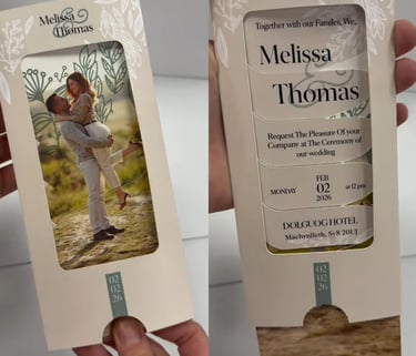 Your wedding is more than a date, it’s a story. We capture its spirit in foil, paper, and bespoke shapes, and carry the same spirit into the digital realm. Every card, every fold, every golden detail speaks of the love it holds.