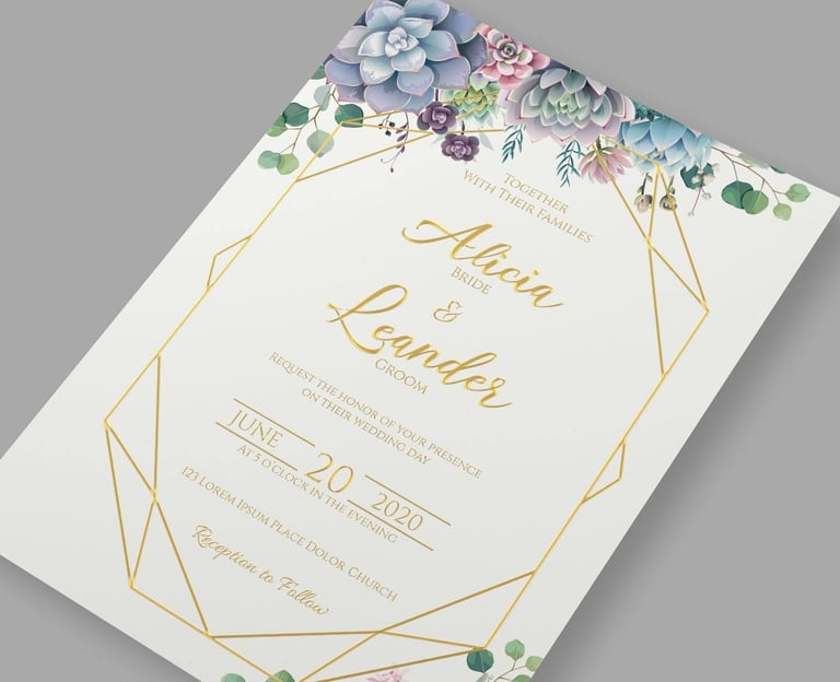 We offer 13 foil colours, spot UV, and selected premium textures so your invitations and cards shine with luxury.